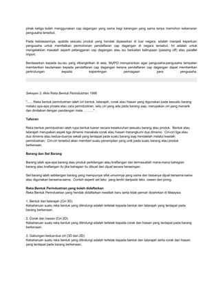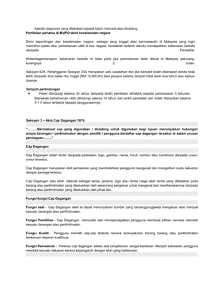 Cap Dagangan ertinya apa-apa tanda yang boleh dinyatakan secara grafik yang boleh membezakan barang-barang atau perkhidmatan satu perusahaan daripada perusahaan-perusahaan yang lain. Contoh Karangan Sekolah Selamat.